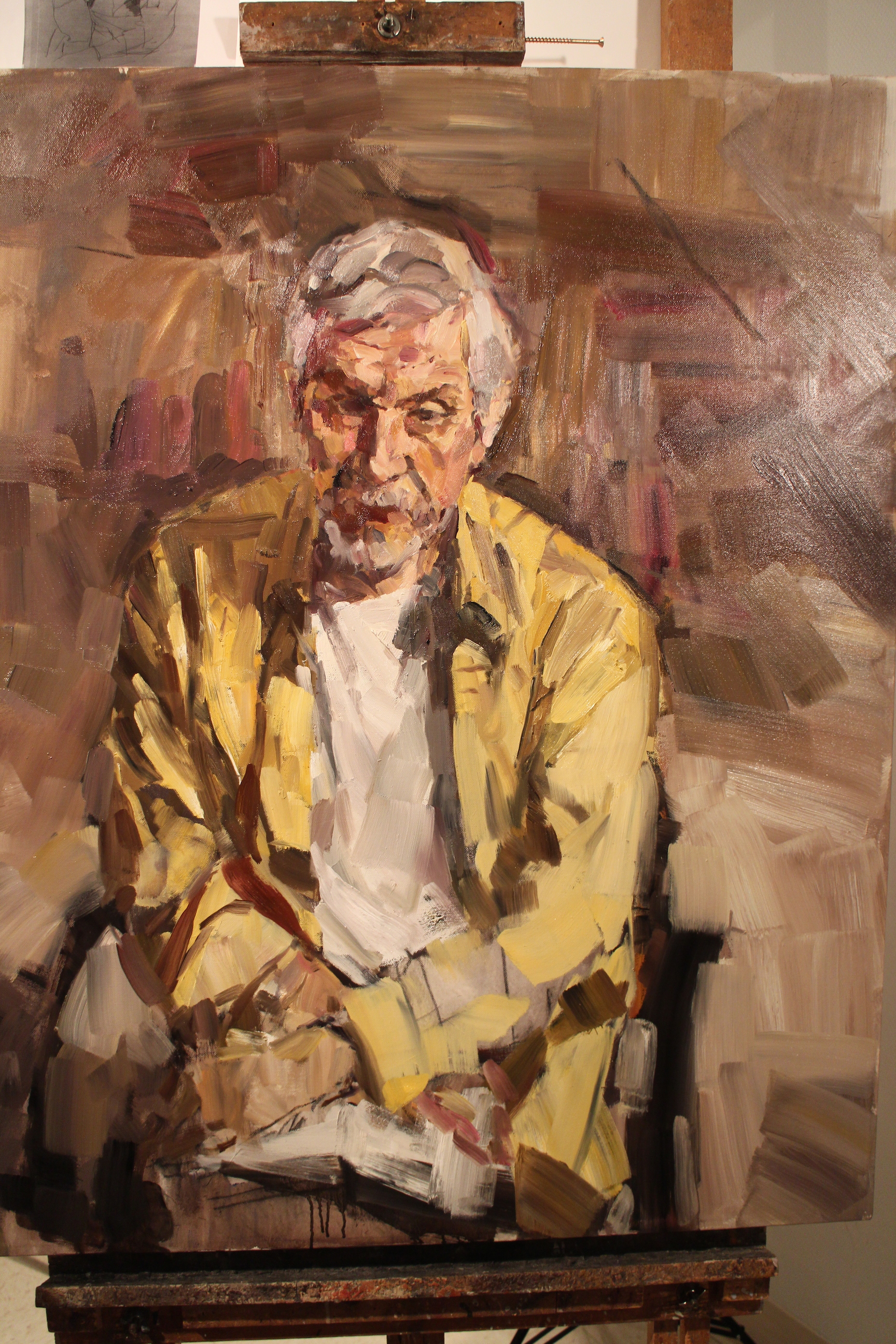 Over the last two years, due to COVID-19, Stephen has been more or less housebound in the company of Sophie which makes her participation as the subject of his painting even more normal than before. His studio is in his house (in the made over living room), and he is never more than a few steps from his easel. Sophie, who is an art teacher, has been home more than normal because of Covid. The opportunity for the two to come together through his art was the natural outcome.